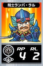 - GC0052騎士ランバ・ラル 生命力1200 攻撃力240 防御力200 特殊効果無し 進化段階1段階目 入手先ラ