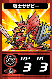 - GC0051騎士サザビー 生命力1100 攻撃力235 防御力235 特殊効果無し 進化段階1段階目 入手先ラクロ