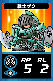 - GC0057戦士ザク 生命力700 攻撃力185 防御力180 特殊効果無し 進化段階1段階目 入手先ラクロアの勇