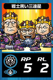 - GC0056戦士黒い三連星 生命力1100 攻撃力180 防御力180 特殊効果リーダー攻撃力5アップ 進化段階1段階目