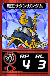 - GC0016魔王サタンガンダム 生命力900 攻撃力170 防御力170 特殊効果無し 進化段階進化前 入手先ラク