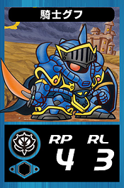 - GC0026騎士グフ 生命力800 攻撃力170 防御力170 特殊効果無し 進化段階進化前 入手先ラクロアの勇者:ラ